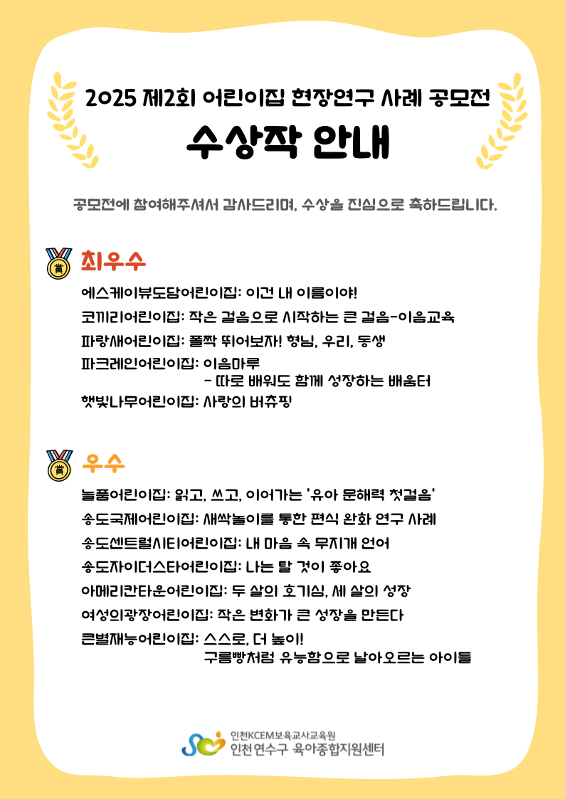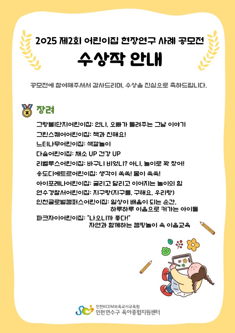 | [º»¼¾ÅÍ] 2025³â Á¦2ȸ ¾î¸°ÀÌÁý ÇöÀ忬±¸ »ç·Ê °ø¸ðÀü ¼ö»óÀÛ ¼±Á¤ ¾È³» | |||||