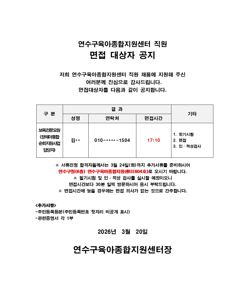 | [º»¼¾ÅÍ] Á÷¿ø(°è¾àÁ÷) ä¿ë(3Â÷) ¸éÁ¢ ´ë»óÀÚ °øÁö | |||||