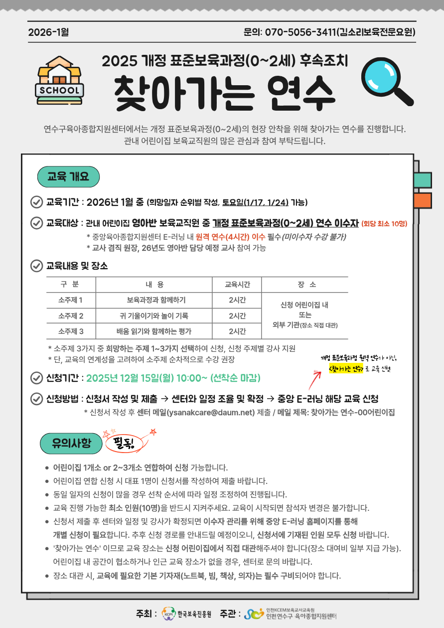 | [º»¼¾ÅÍ] 2025 °³Á¤ Ç¥Áغ¸À°°úÁ¤(0~2¼¼) ÈļÓÁ¶Ä¡ 'ã¾Æ°¡´Â ¿¬¼ö' ¾È³» | |||||