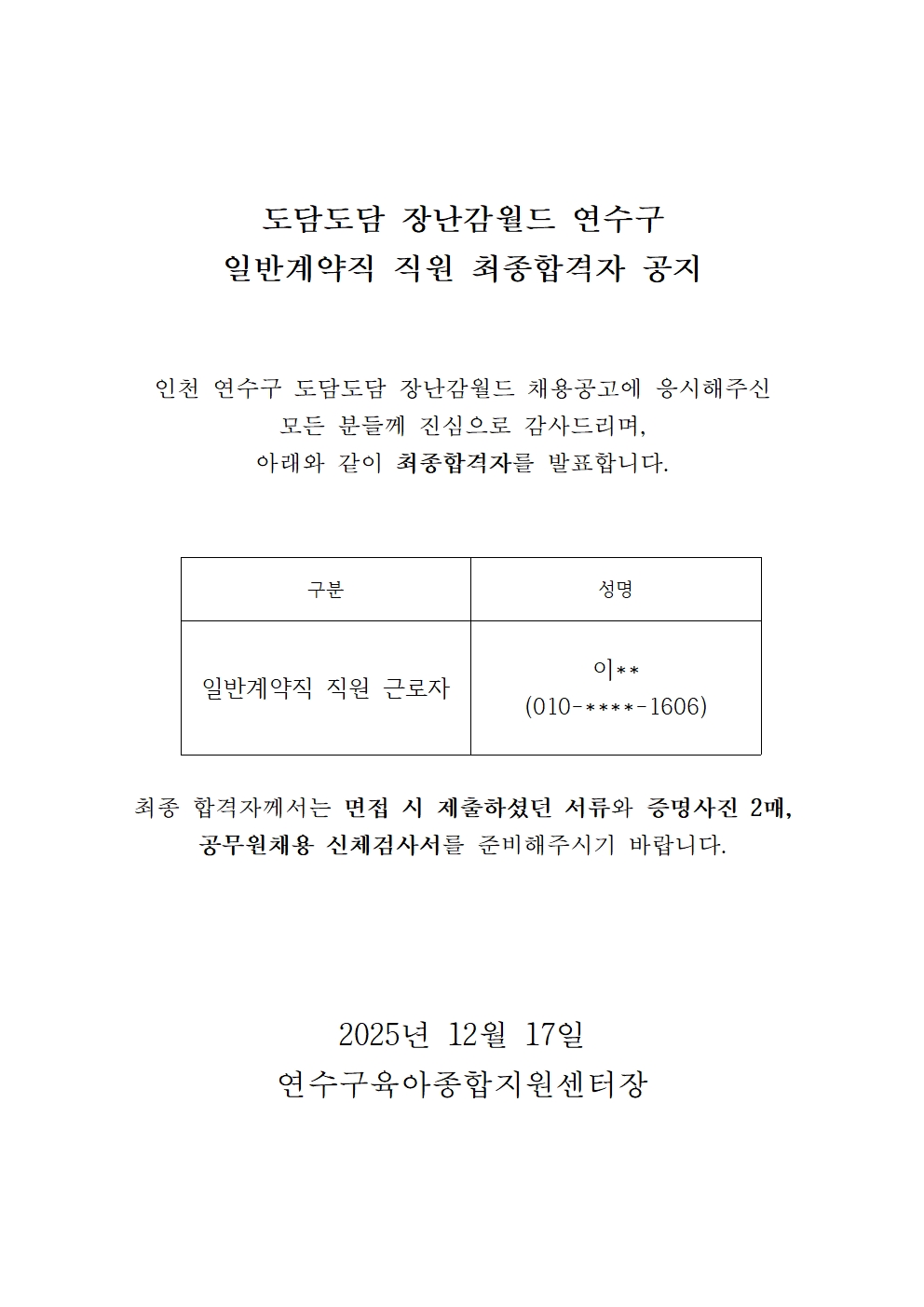 | [º»¼¾ÅÍ] µµ´ãµµ´ãÀå³°¨¿ùµå ÀÏ¹Ý °è¾àÁ÷ ÇÕ°ÝÀÚ °øÁö | |||||