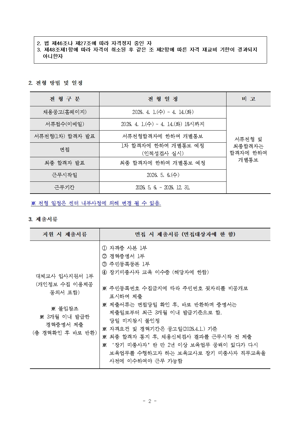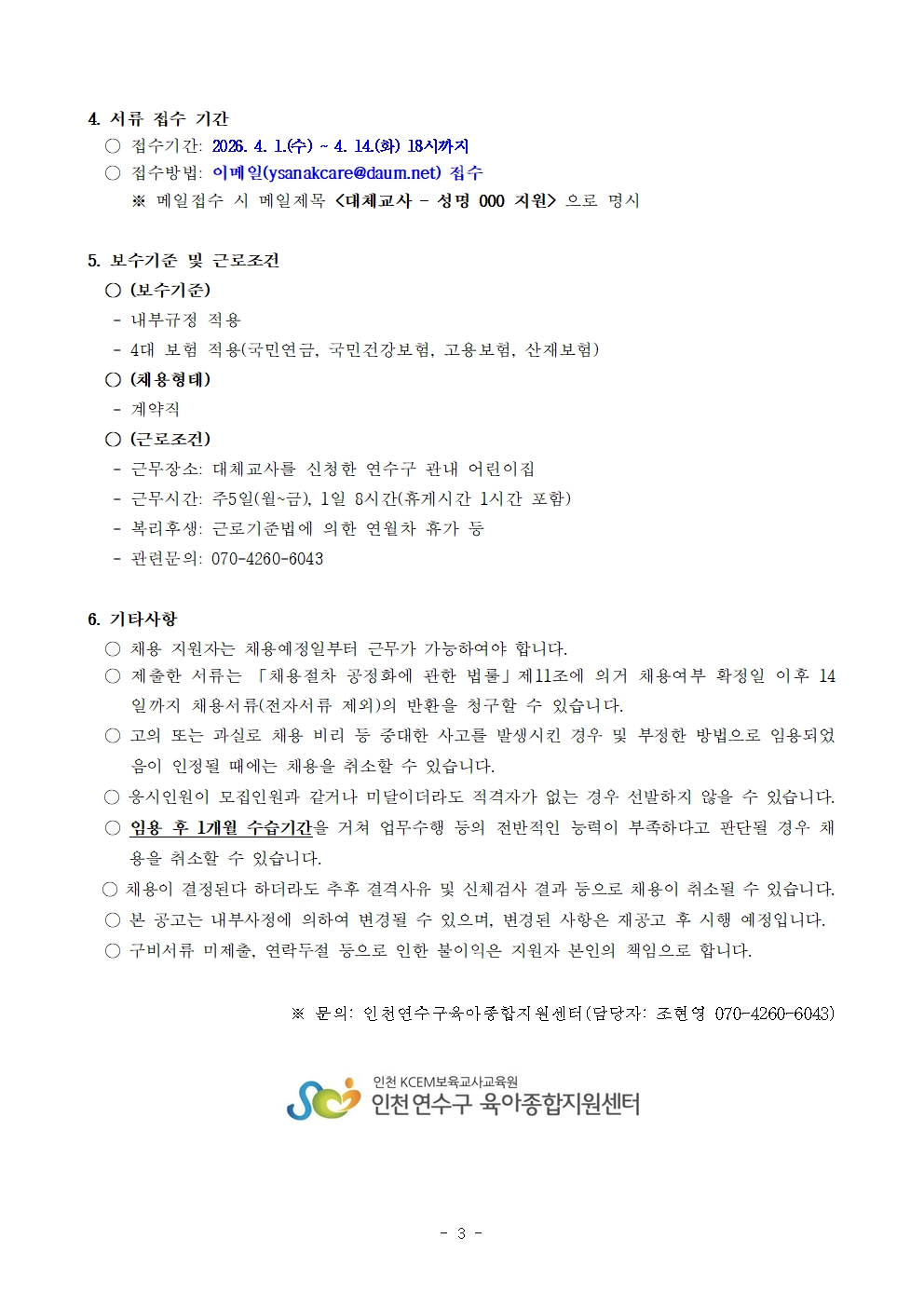 | [º»¼¾ÅÍ] 2026³âµµ ¿¬¼ö±¸À°¾ÆÁ¾ÇÕÁö¿ø¼¾ÅÍ ´ëü±³»ç ä¿ë °ø°í | |||||