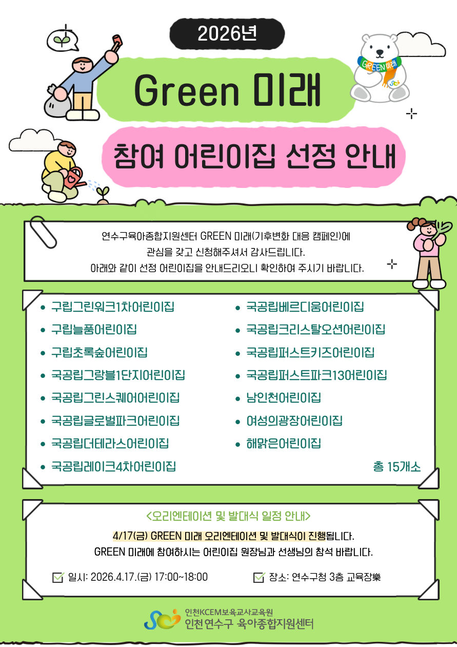 ¾È³çÇϼ¼¿ä. ¿¬¼ö±¸À°¾ÆÁ¾ÇÕÁö¿ø¼¼ÅÍÀÔ´Ï´Ù. 2026³â Green ¹Ì·¡ ¼±Á¤¾î¸°ÀÌÁýÀ» ¾È³»µå¸®¿À´Ï È®ÀÎÇÏ¿© Áֽñ⠹ٶø´Ï´Ù. °¨»çÇÕ´Ï´Ù :-)
