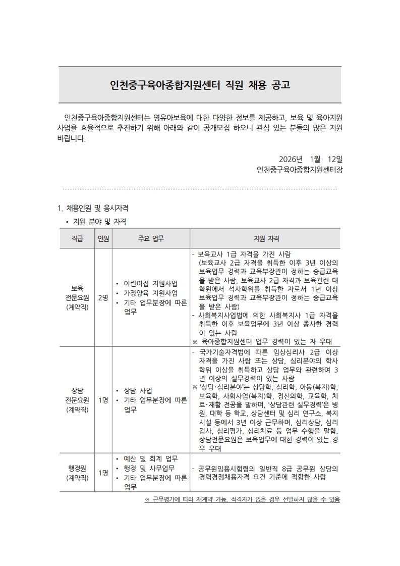 | [Áß±¸À°¾ÆÁ¾ÇÕÁö¿ø¼¾ÅÍ] Á÷¿ø ä¿ë °ø°í | |||||