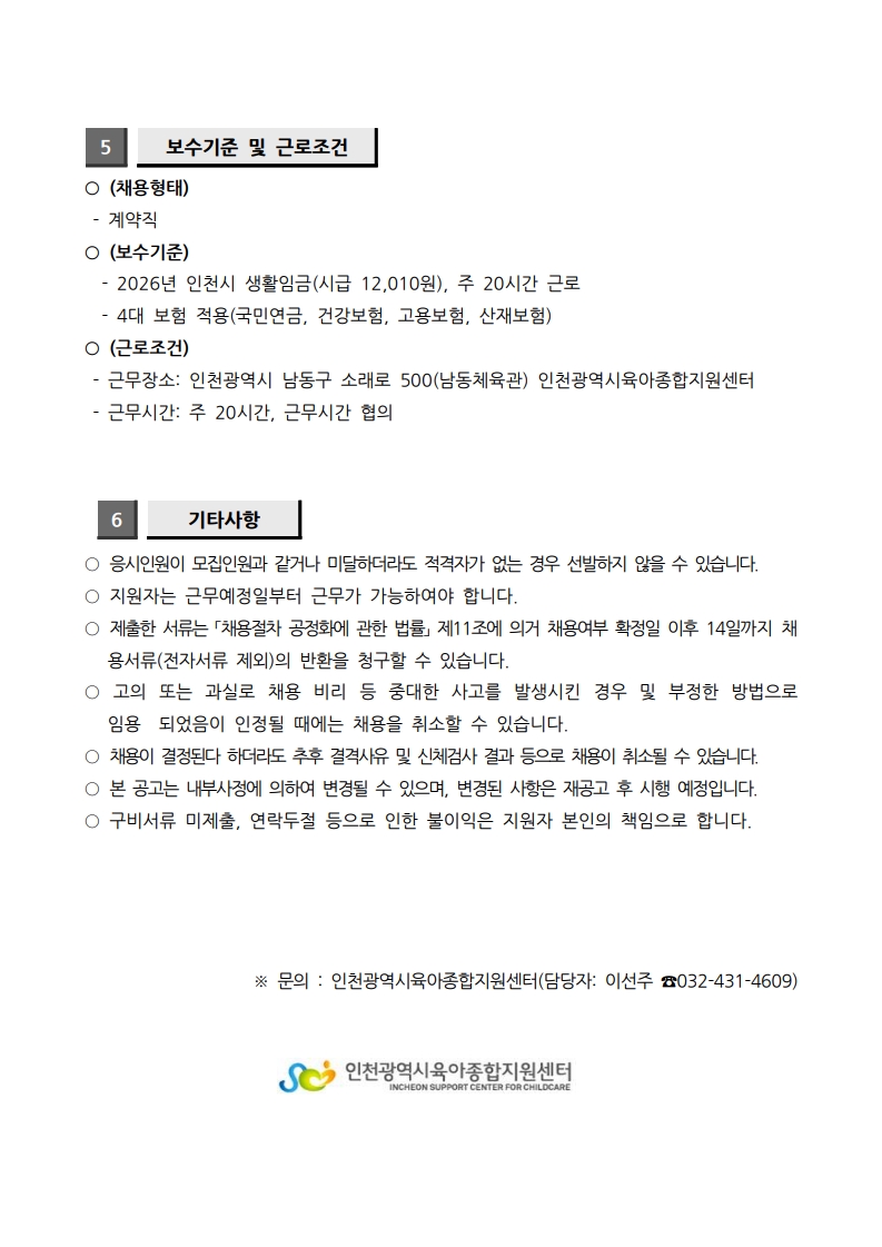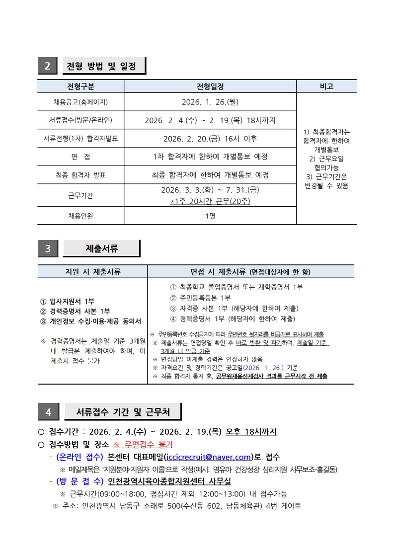 | [ÀÎõ½ÃÀ°¾ÆÁ¾ÇÕÁö¿ø¼¾ÅÍ] 2026³â ¿µÀ¯¾Æ °Ç°¼ºÀå ½É¸®Áö¿ø »ç¹«º¸Á¶(½Ã°£Á¦) ä¿ë°ø°í | |||||