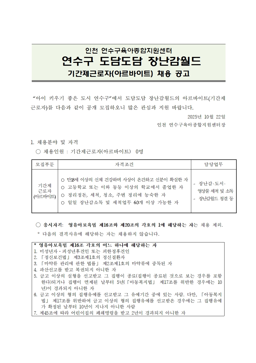 | ´ÙÀ½±Û ¡å | [ÀÎõ½ÃÀ°¾ÆÁ¾ÇÕÁö¿ø¼¾ÅÍ] ´ëü±³»ç°ü¸®ÀÚ(Àå¾ÖÀÎ) ä¿ë | ||||