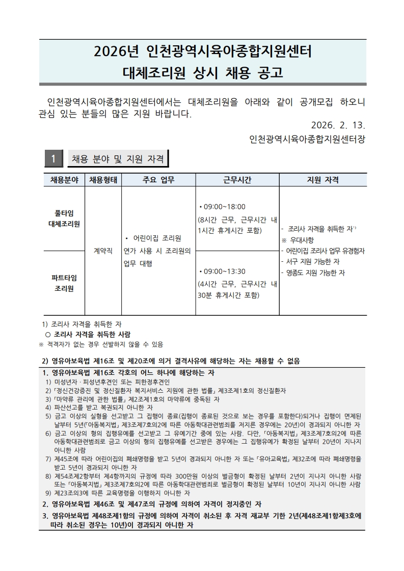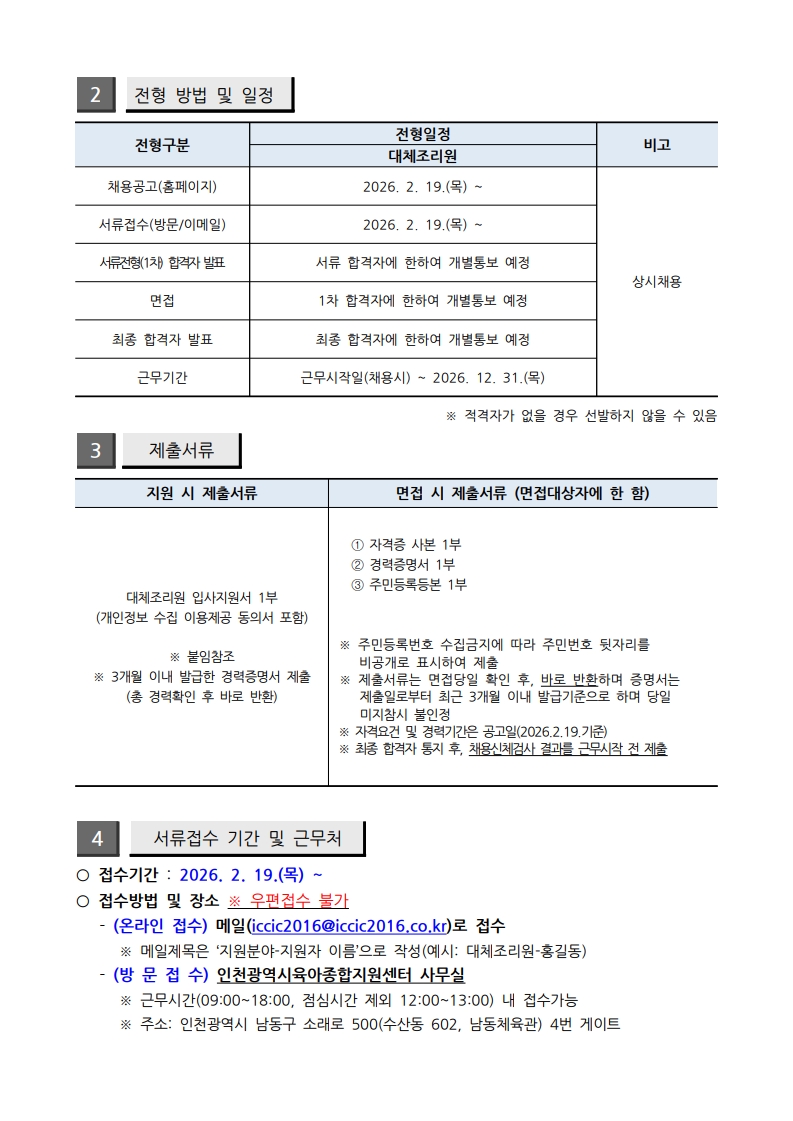 [ÀÎõ½ÃÀ°¾ÆÁ¾ÇÕÁö¿ø¼¾ÅÍ] ´ëüÁ¶¸®¿ø ä¿ë °ø°í
